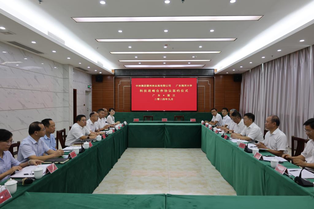 杨洲在座谈会上表示,希望双方在党建共建引领下,开展有组织科研攻关、有组织人才培养、有组织社会服务。张立丰代表雷林公司对杨洲一行表示热烈欢迎,并介绍了中林集团及雷林公司的企业概况。邓逢光介绍了我校近年来的发展建设情况。我校滨海农业学院院长马驿和雷林公司林业科学研究分公司经理陈文平分别代表双方签署了《英国上市公司365与中林集团雷州林业局有限公司科技战略合作协议》。随后,双方围绕党建共建、人才培养、科研攻关、平台建设、社会服务进行了深入交流。