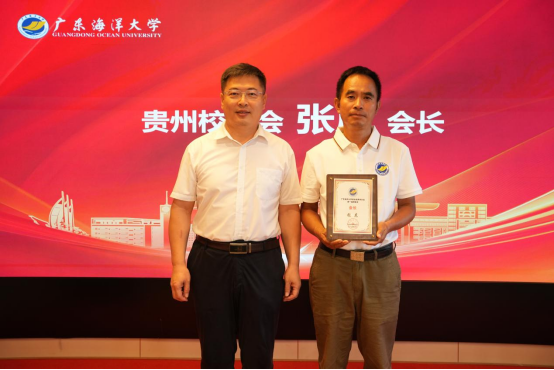 杨洲介绍了学校的发展历程以及在学科建设、队伍建设、人才培养、科技创新和社会服务等方面取得的成绩。杨洲指出,贵州是中国西部陆海新通道的重要节点,近年来,在大数据、生态经济、绿色农业等领域的特色发展之路,与我校在水产养殖、智慧渔业、食品绿色加工等领域的优秀高度契合。当前,国家正以新发展理念为引领,全力推进高质量发展,构建新发展格局,推进中国式现代化,学校作为一所具有鲜明特色的高校,迎来了前所未有的发展机遇和挑战。他期望与更多的校友一同为学校建设和地方经济社会发展“挑大梁”“担大责”。并提出了四点期望:一是要让校友会成为“情感共同体”用温度凝聚力量;二是要让校友会成为“发展连接器”,用优势赋能校地;三是要让校友会成为“精神传声筒”,用行动擦亮底色;四是要让校友会成为“责任践行者”,用担当回馈社会。杨洲向校友们诚挚发出邀请,相约今年11月22 日,相聚海大,共同见证母校90周年华诞,共享母校的喜悦和荣光。最后,还与在黔校友分享了母校获赠天安门国旗的喜悦。