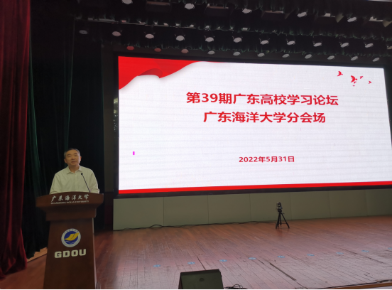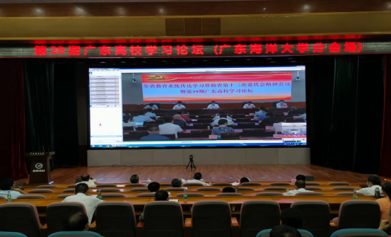 5月31日,广东省委教育工委举办第39 期广东高校学习论坛,专题学习贯彻省第十三次党代会精神。学校领导曹俊明、彭权群、林晓敏、邓逢光、林宇,各职能部门主要负责人、二级党组织书记等50余人在湖光校区教学主楼多功能厅分会场参加学习,阳江校区相关同志以专线视频方式参加本次专题学习会。